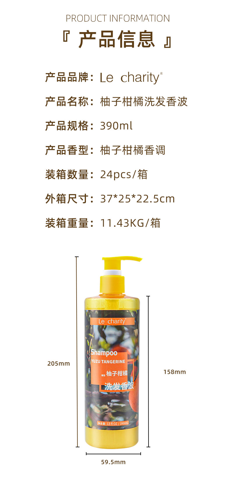 Le charity/乐思施洗发水柚子柑橘香型390ml
